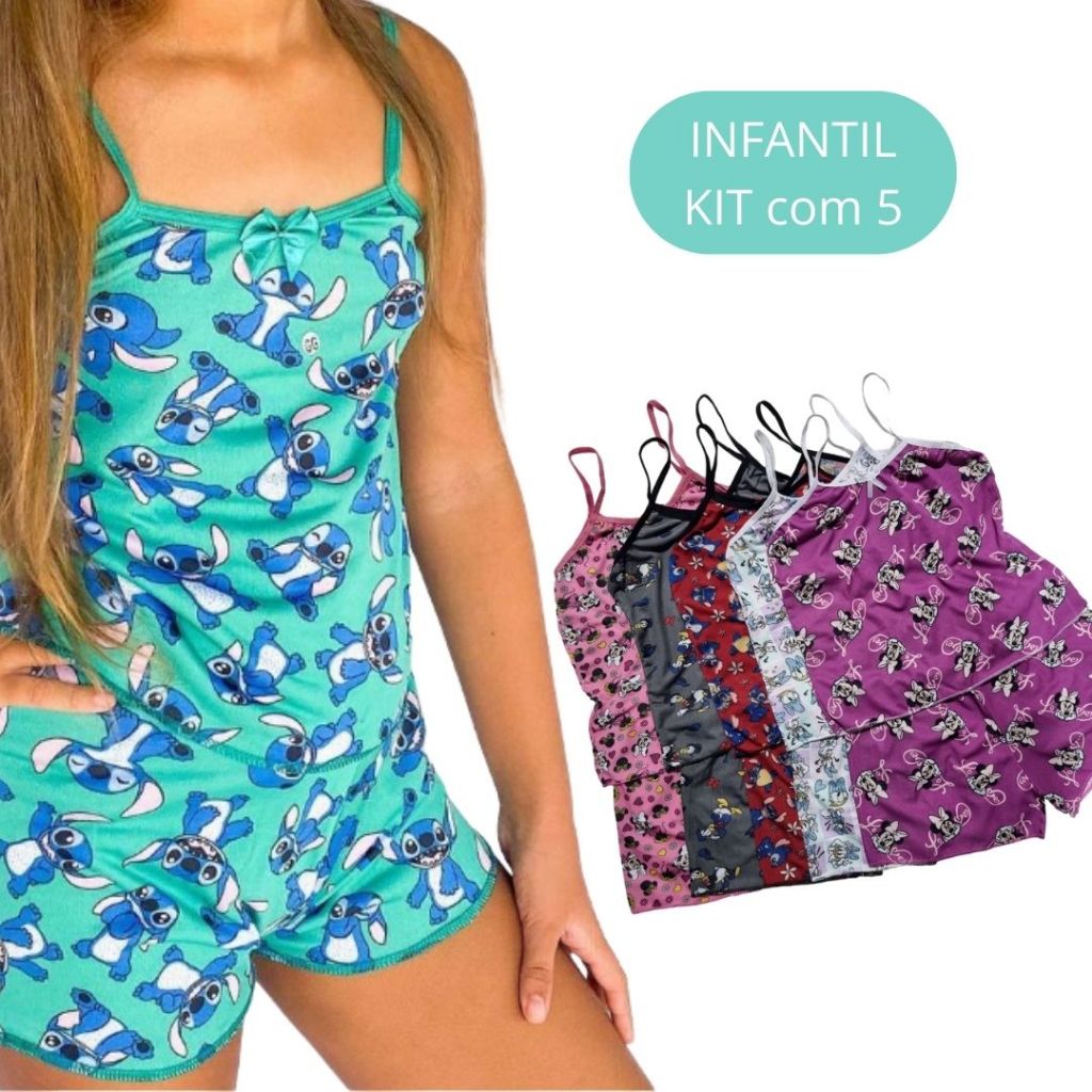 Kit 5 Pijamas Infantil Baby Doll Estampado com Short Roupa de Dormir