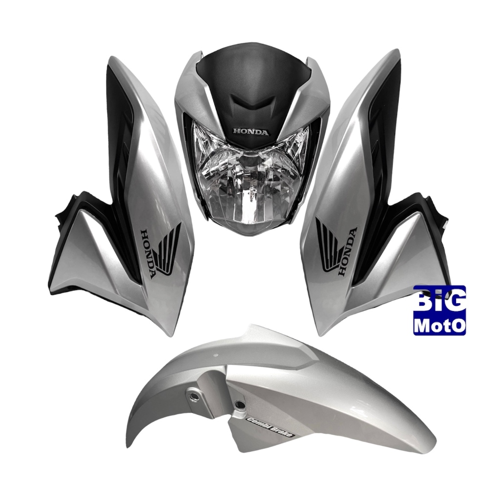 Kit Carenagem CG Titan 160 2022 - Frente Farol completo CG Titan 160 2022 Dourado + Par Aba do tanque Prata 2022 com Complemento+ Par Tampa Lateral 2022 com Complemento + Rabeta CG Titan 160 Prata metálico 2022