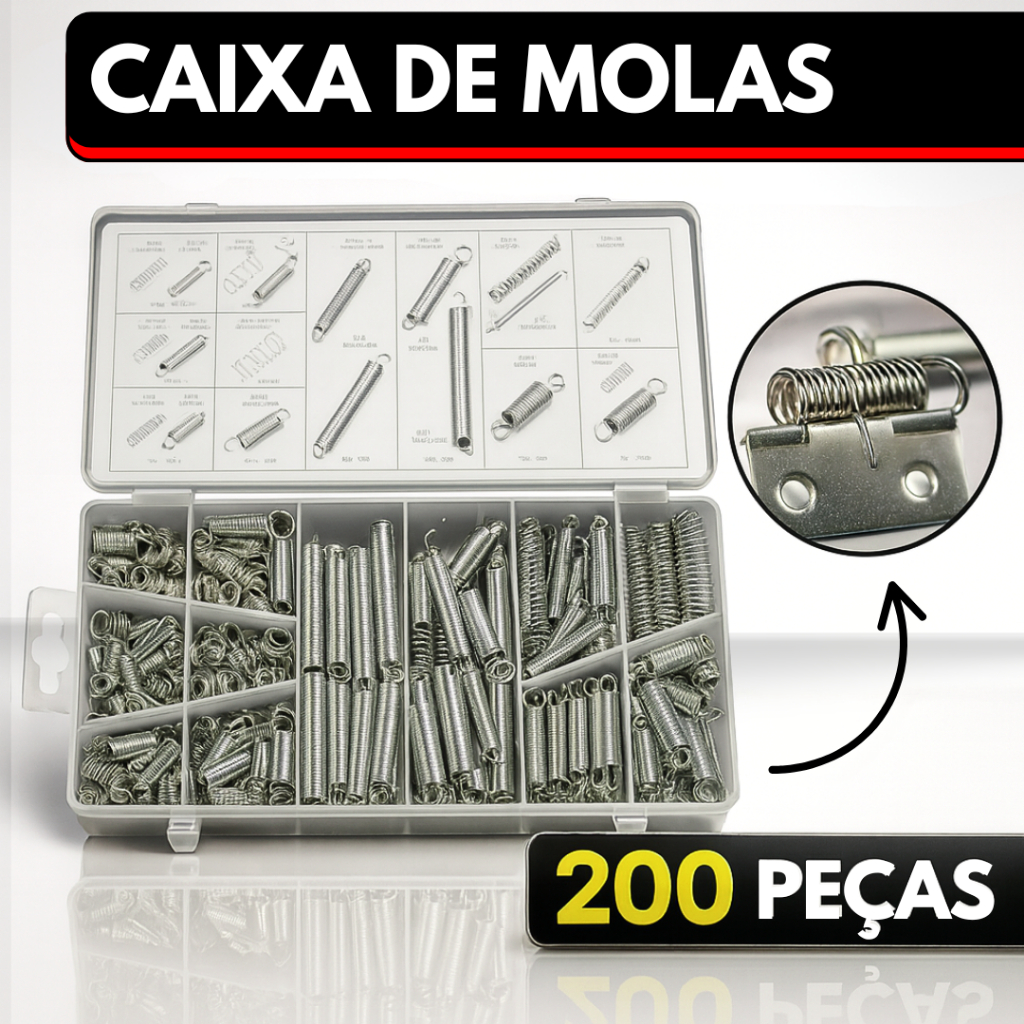 Kit 200 Mola de Compressão Extensão Pressão Aço Tensão Caixa de Molas caixa de plástico transparente