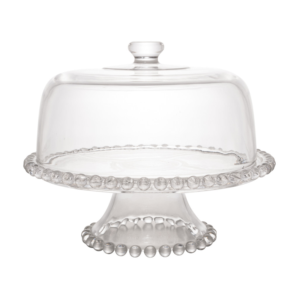 Prato de Cristal Porta Bolo Boleira Queijeira Suporte Doces com Pé e Tampa Pearl Bolinhas Transparente Wolff