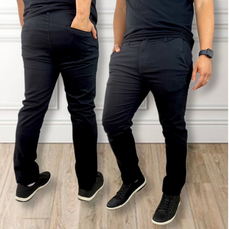 Calça de SARJA Masculina FIT com Elastano Slim Bolso Embutido Alfaiataria