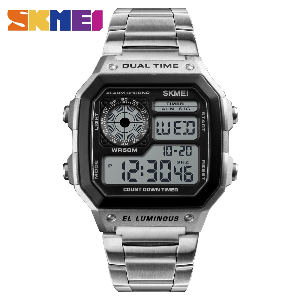 Skmei topo de luxo moda esporte relógio masculino 5bar relógios à prova água pulseira aço inoxidável relógio digital 2021 novo