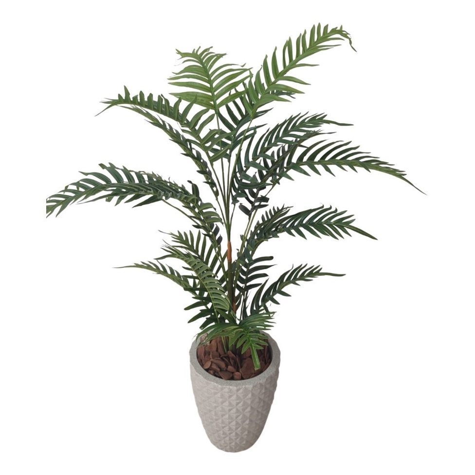 Vaso Grande Decorativo + Planta Artificial Palmeira Realista