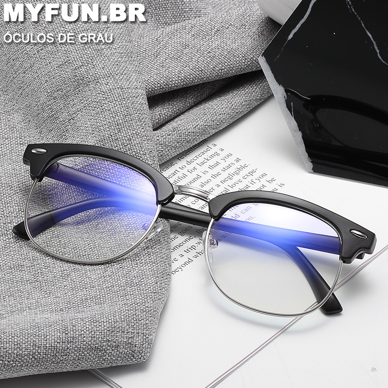 Óculos De Meia Armação Boyseen Anti Luz Azul Estilo Retrô Para Homens E Mulheres Valor De Miopia-400 ~ + 350