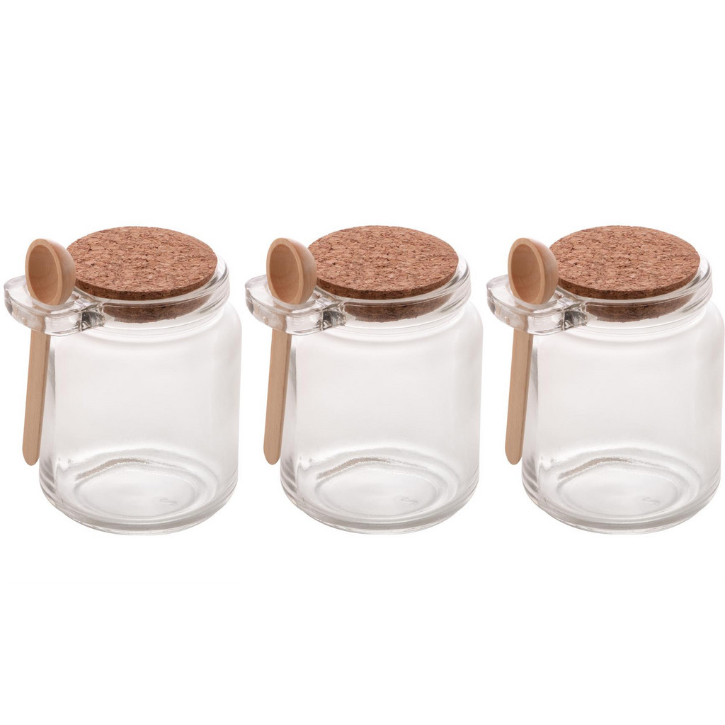 Kit 3 Potes de Vidro com Colher em Bambu e Tampa Rolha 240ml Lyor - Saleiro e Porta Condimento