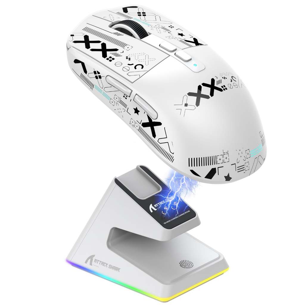 Mouse Attack Shark X11 Sem Fio, Com Base de Carregamento, 22000DPI, RGB, Tri-Mode