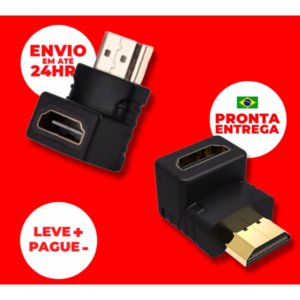 Adaptador Hdmi 90° Grau Curva Em L Macho X Fêmea Tv Smartv Usb Kit 2 Unidades