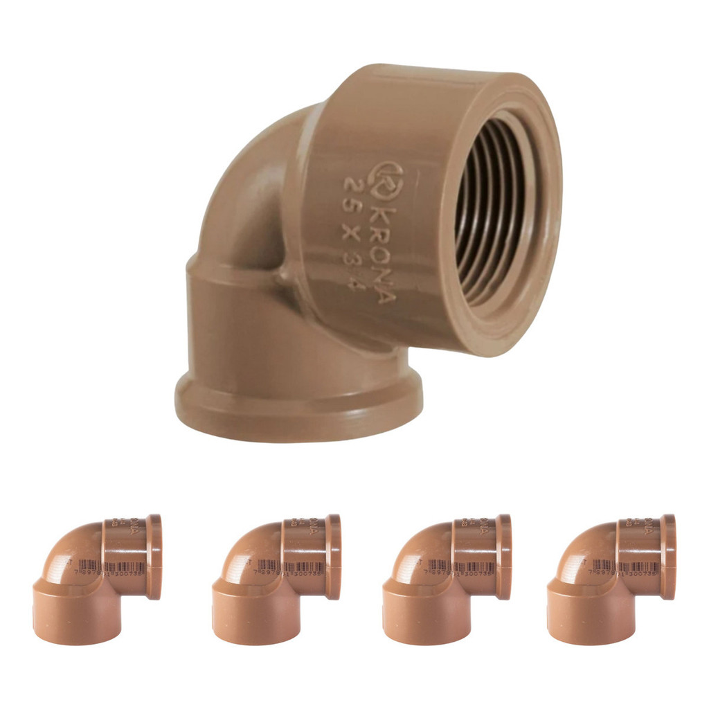 Kit C/ 5 Unidades de Joelhos LR C/ 90° e 25mm x 3/4 C/ Rosca - KRONA Ref. 485