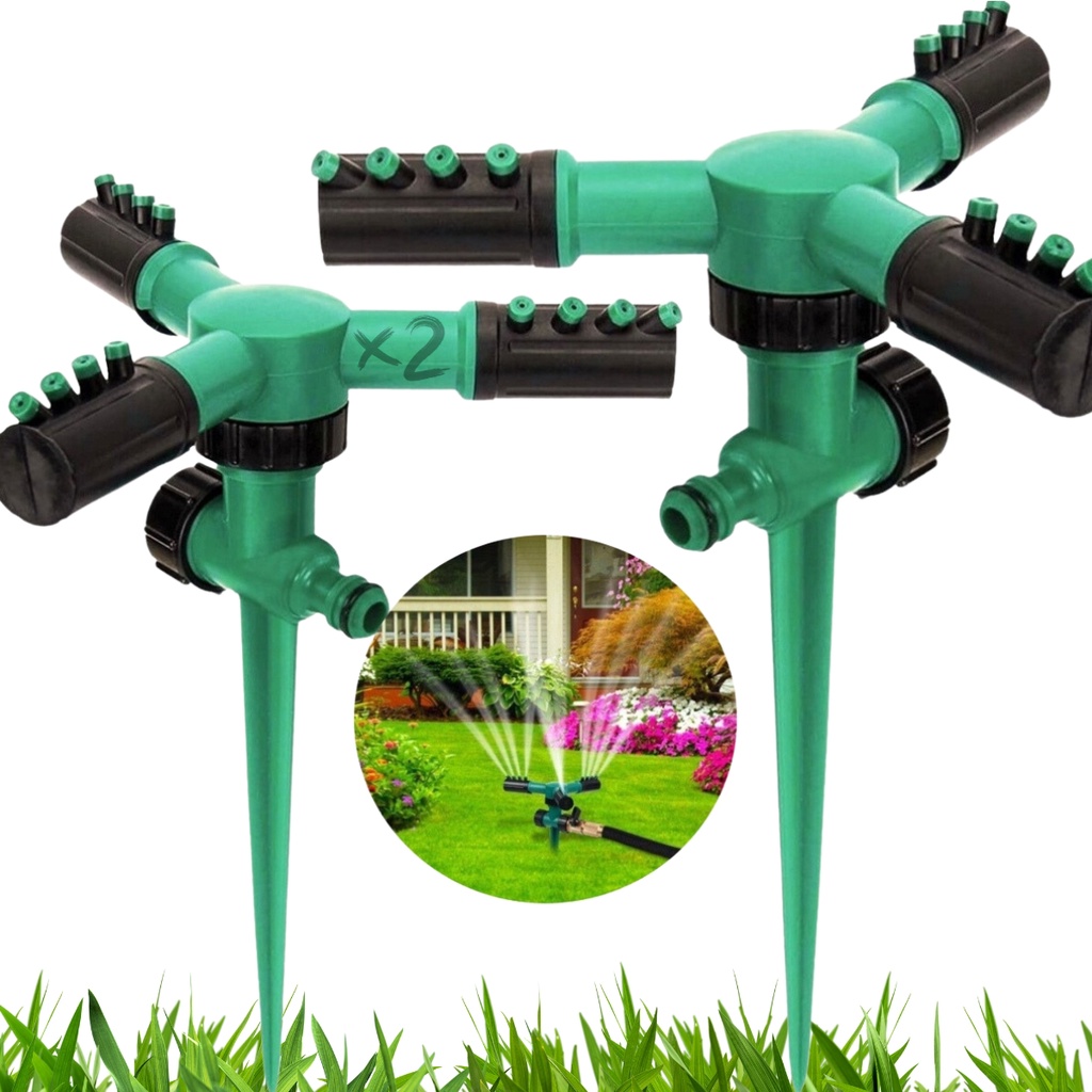 Kit 2 Irrigador Giratório 360° Automático Aspersor 12 Jatos Água Bico Gotejador Molhar Grama Irrigação Regulagem Furos Rega Ajustável Regar Plantas Hortas Jardim Gramados