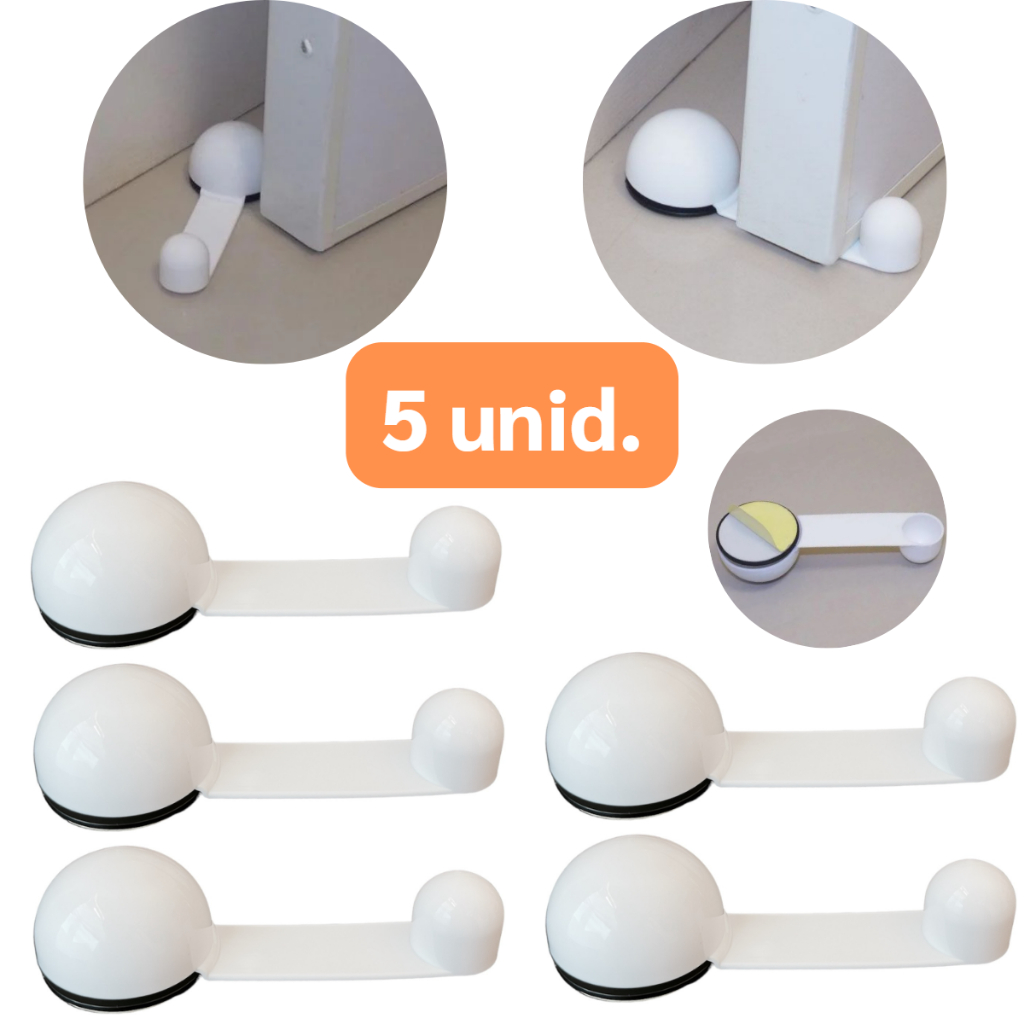 Kit 5 Unid. Trava Porta Com Adesivo Prendedor Batente Sem Parafuso Dupla Face Prático Porta Travada