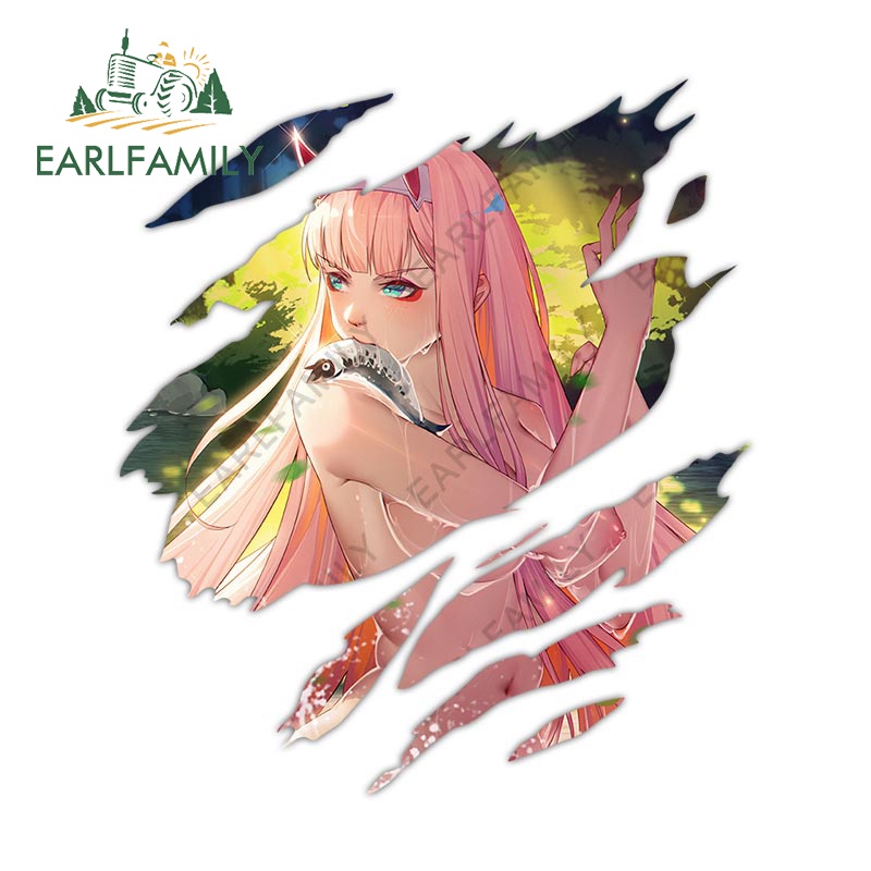 EARLFAMILY 13cm X 8,4cm Zero Two Tear Car Sticker Anime Decalque Criativo Para Capacete De Motos Oclusão Do Acessórios Carros Raspadinha