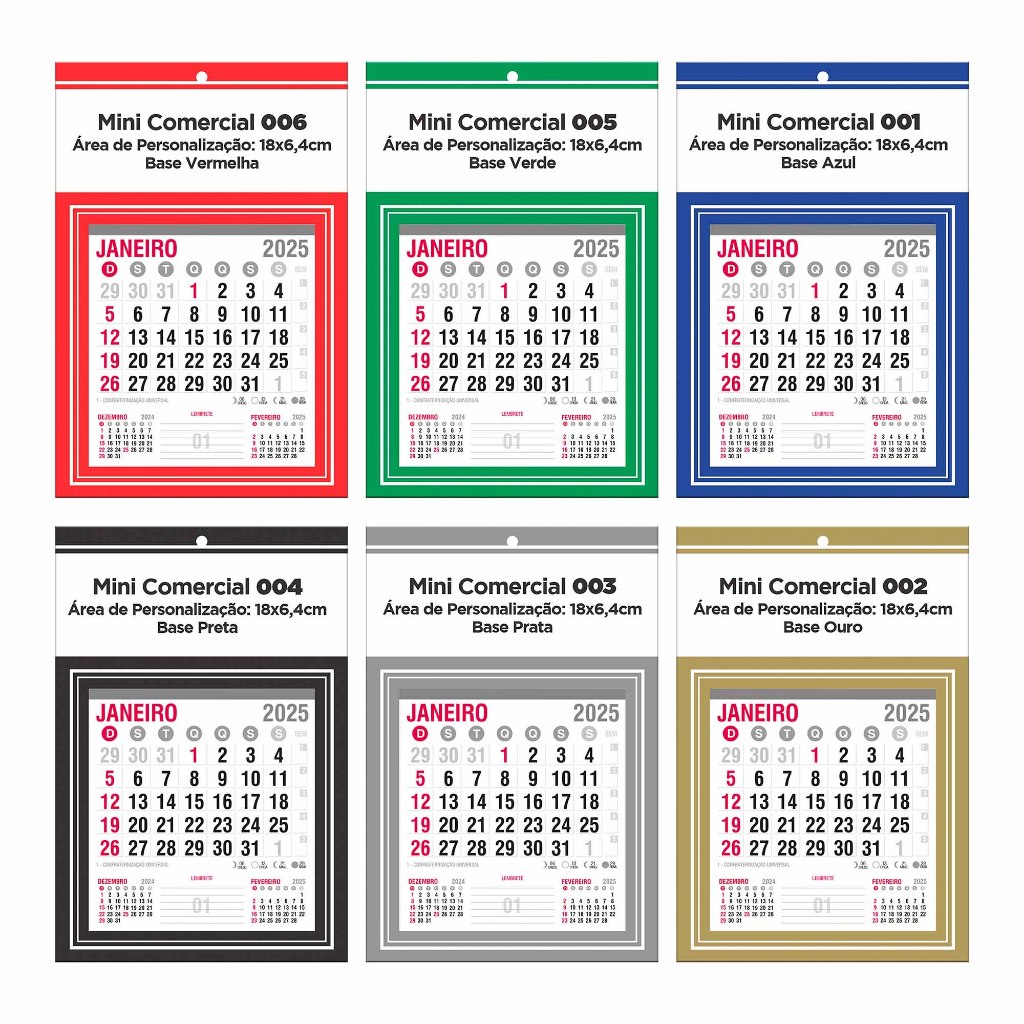 100 Calendários de Parede Folhinha Mini Comercial 2025 p/ Personalizar 18x27cm Várias Cores Com Bloco 12 Meses