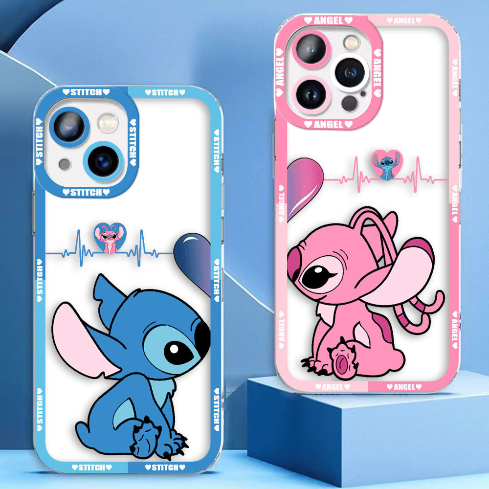 Disney Anime Lilo & Stitch Capa De Anjo Olhos Transparentes Transparente Para iPhone Apple 15 14 12 13 11 Pro 8 7 SE 2022 2020 Plus X XR XS Máxima Silicone Macia E
