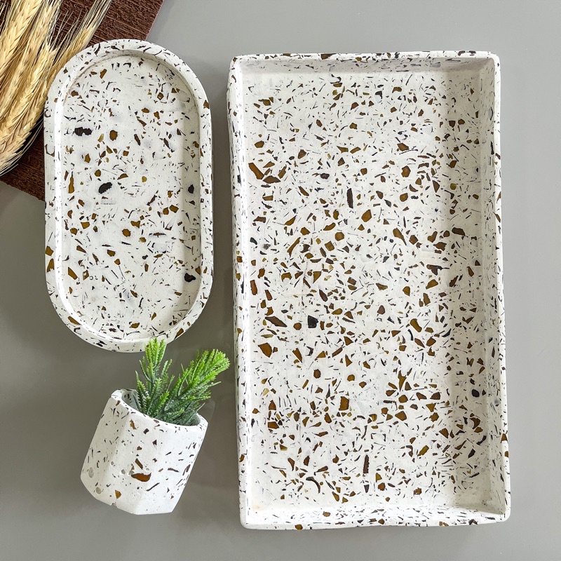 Kit Bandeja Retangular + Bandeja Oval + Vaso PP Decorativo para Sala Banheiro Escritorio