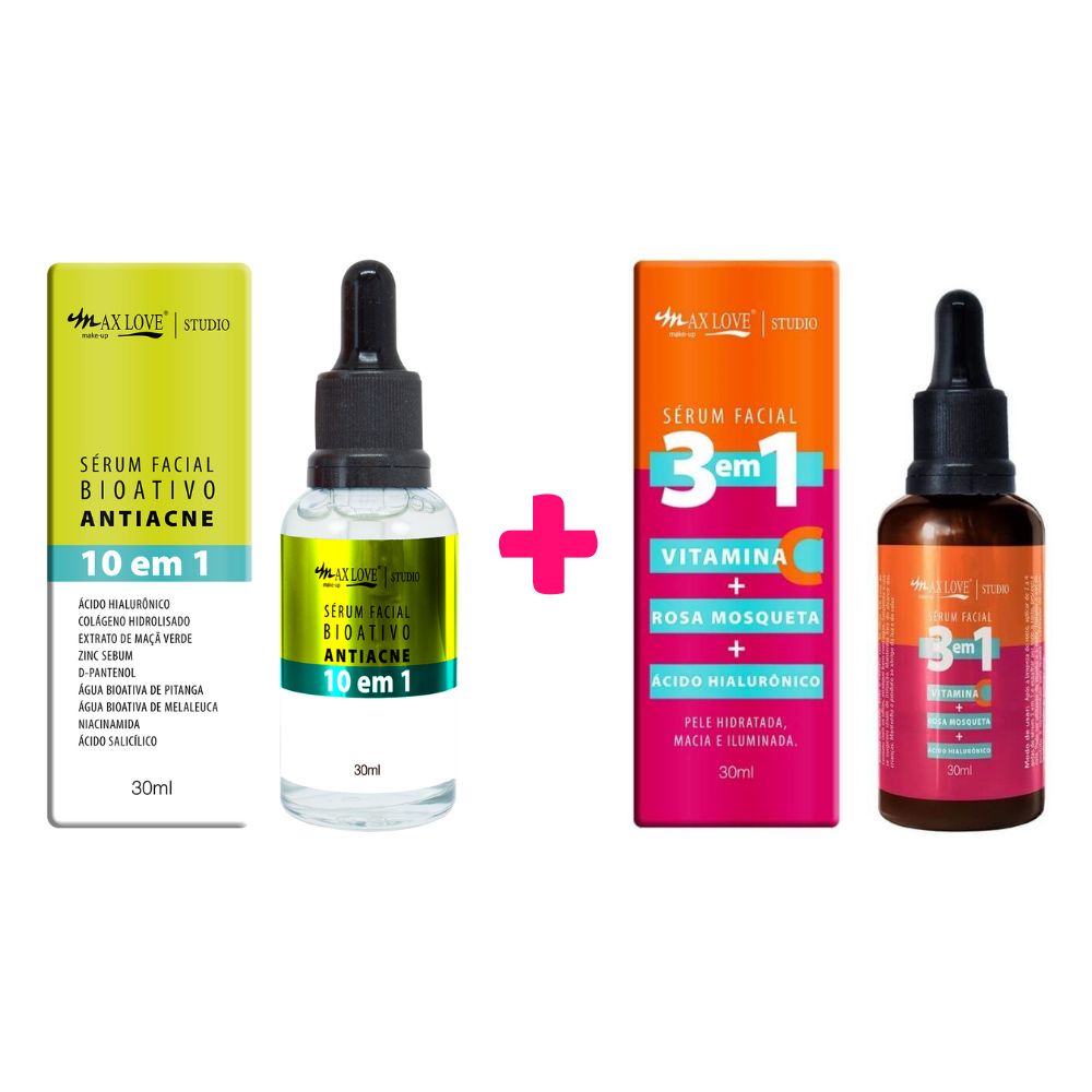 Kit 2 Sérum Max Love Vitamina C 10 em 1 + Antiacne Bioativo Lançamento 30ml