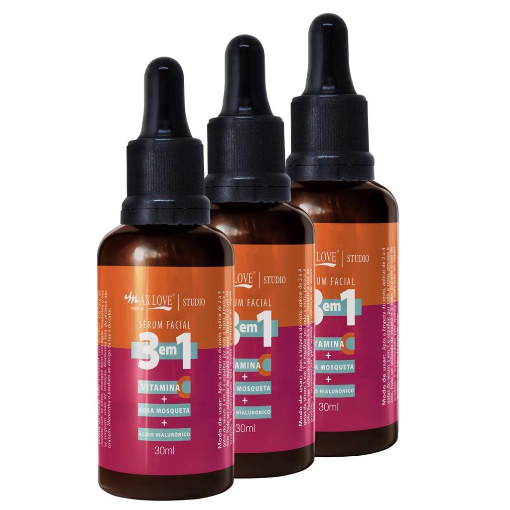 Kit c/ 3 Sérum Facial 3 em 1 Max Love