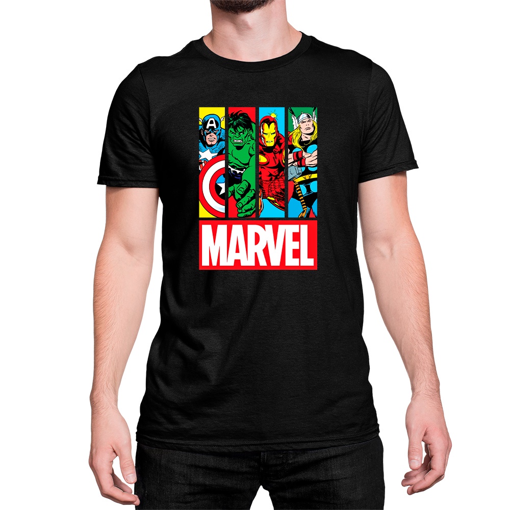 Camiseta Unissex Algodão Marvel Logo Herois Thor Homem De Ferro Capitão America-DROP -KAOZP.