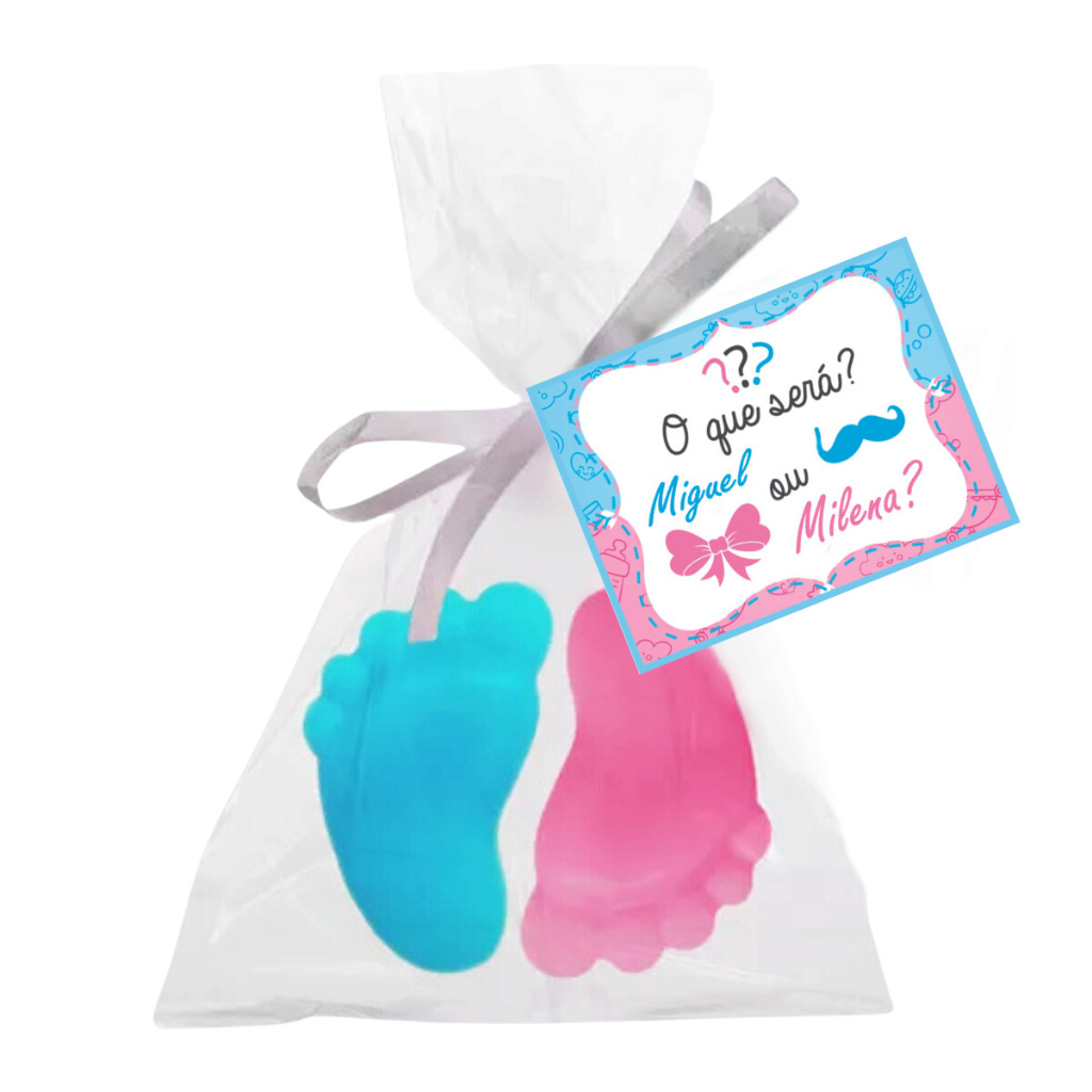 kit 30 Mini pezinhos (15 pares) lembrancinhas Chá Revelação Menina: Sabonetes Rosa