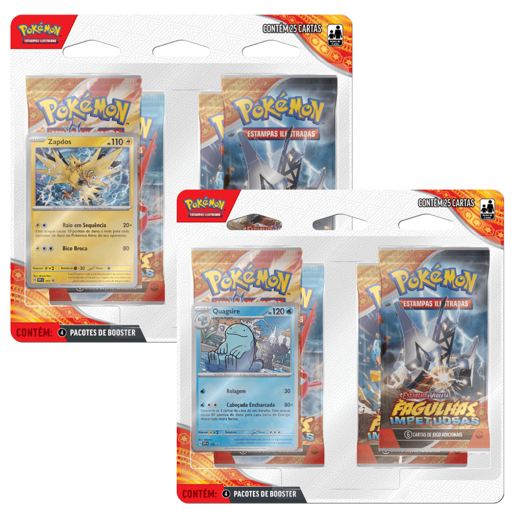 BLISTER QUÁDRUPLO ZAPDOS OU QUAGSIRE FAGULHAS IMPETUOSAS EV8 COPAG POKÉMON TCG 4 BOOSTER CARTA PT BR