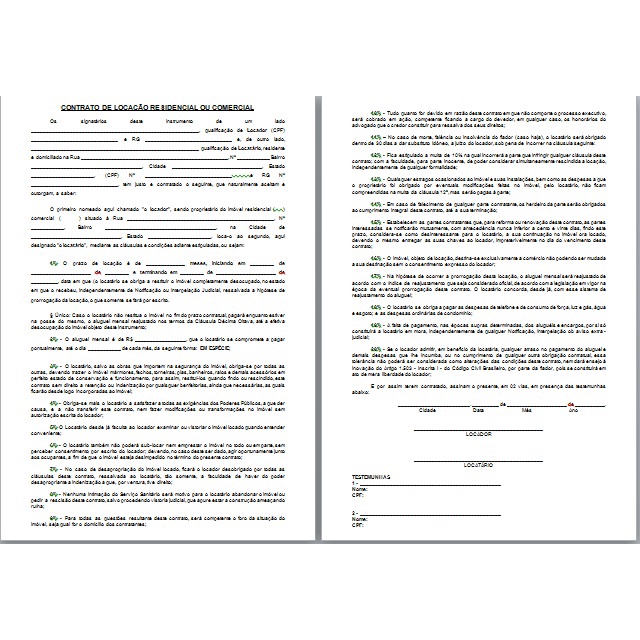 R$ 45,50 - 100 Contrato de Locação Residencial e Comercial para preencher