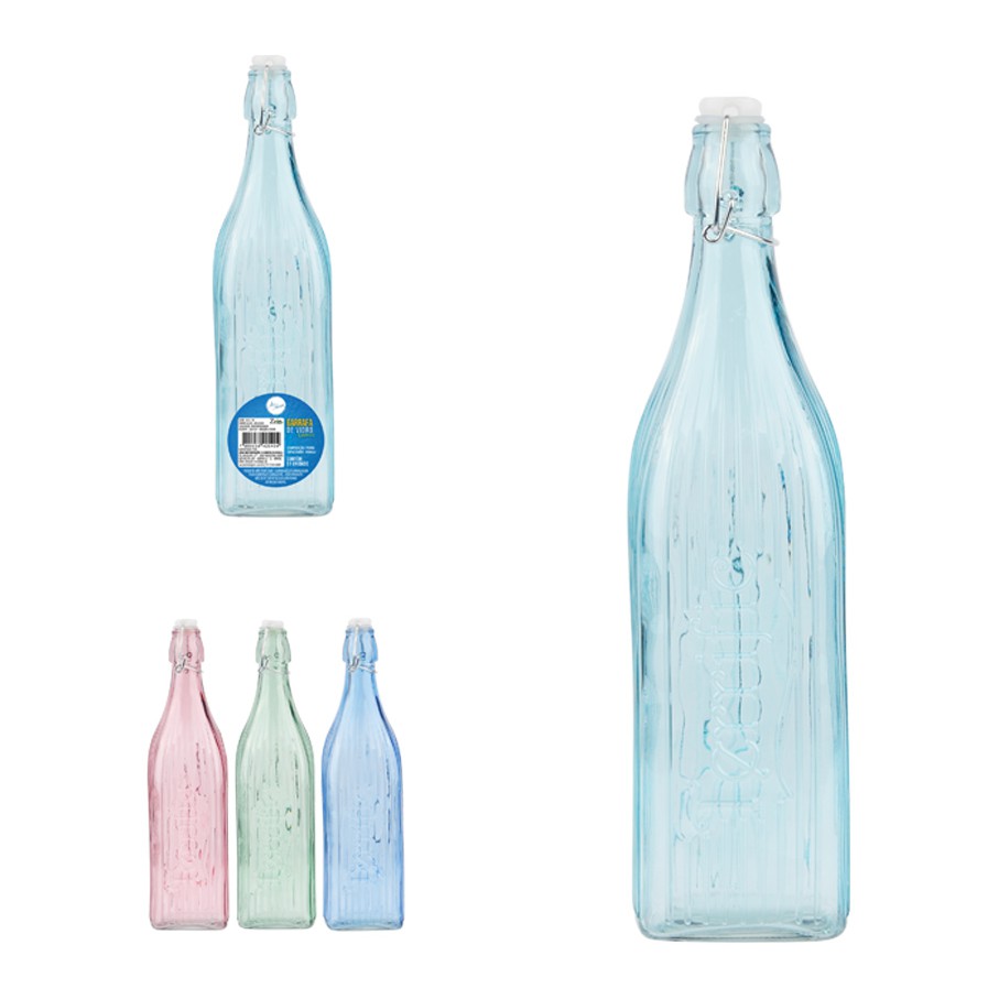 Garrafa de Água Estilosa para deixa sua geladeira bonita (Vidro) 1 Litro com tampa hermética colorida