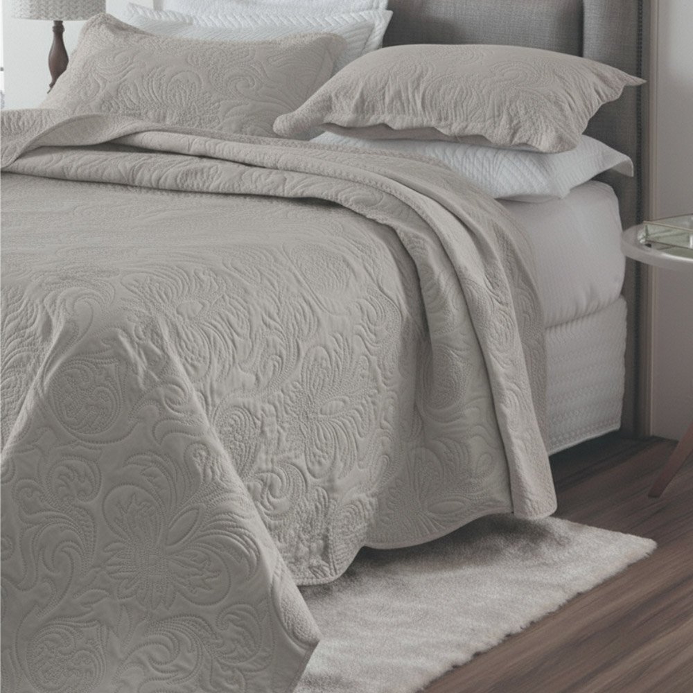 Kit Cobre Leito Colcha King Antique Tecido Piquet Liso 3 Peças - Cinza
