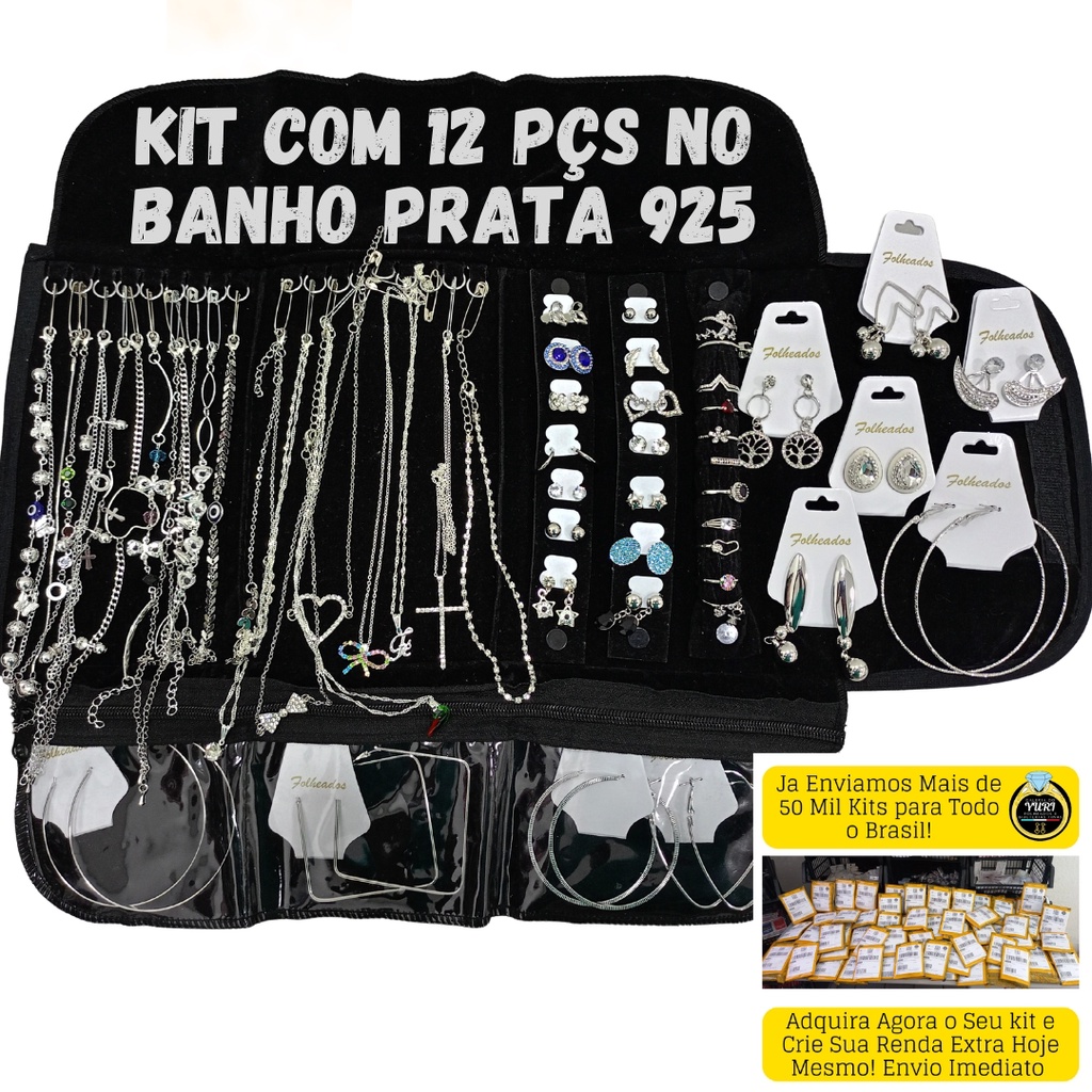 Semi Joias kit iniciante com 12 lindas peças no banho Prata 925 acompanha brinco de argola de luxo