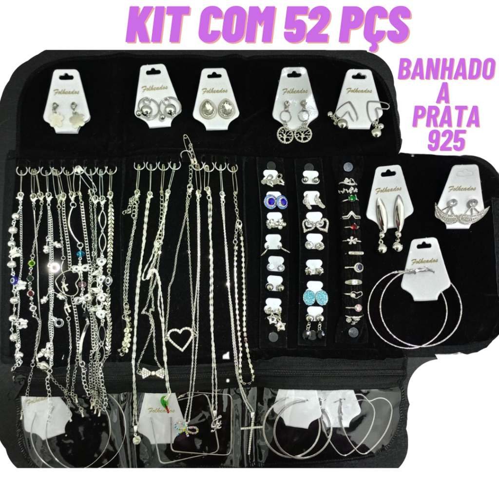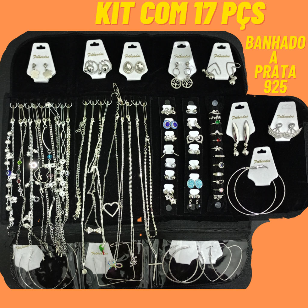 Kit Semi Jóias 20 pçs Folheadas Prata 925 com Mostruário Atacado Revenda Colar Brinco Anel Pulseira