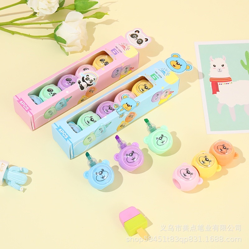 Caneta Marca Texto ursino Mini Fofinho Kit C/5-papelaria escolar panda e urso