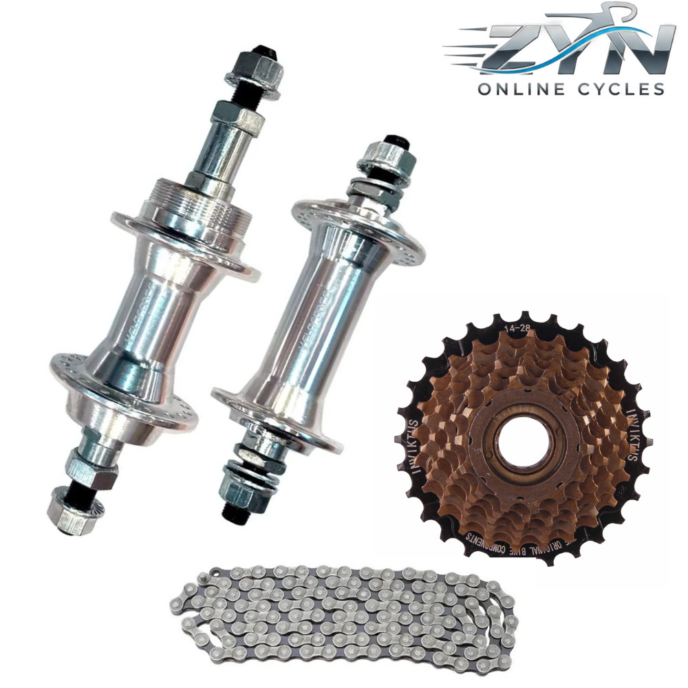 Kit Bicicleta Aro 24/26/29 Par de Cubos V-Brake 36F C/ Roda Livre e Corrente 7 Velocidades