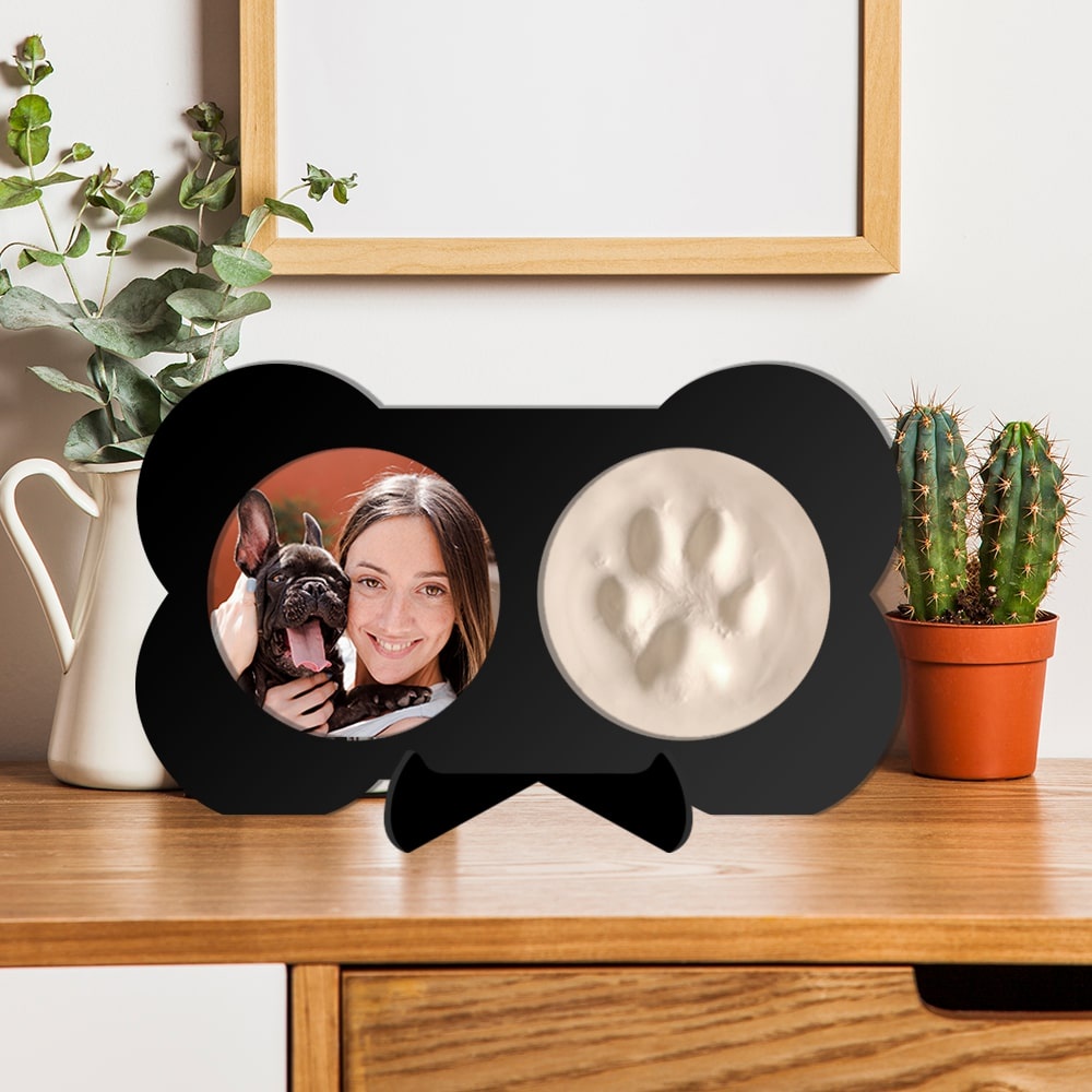 Porta Retrato com Molde da Patinha do Seu Pet - Lembrança Eterna - Molde Pata Cachorro Dog - Presente para Animais