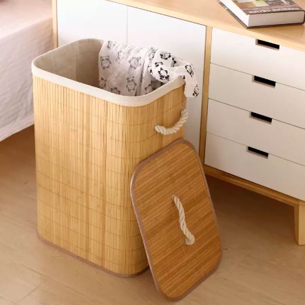 Cesto de Roupa Suja Limpa 60 LITROS Lavanderia em Bambu com tampa Retangular Forrado com Alça Brinquedo Quarto Banheiro Casa Limpeza Organizador Decoração Dobrável