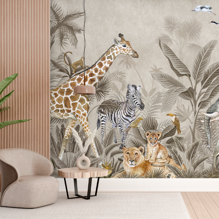 Painel Mural Papel de Parede Personalizado Safari Savana Floresta Bananeiras Premium Luxo
