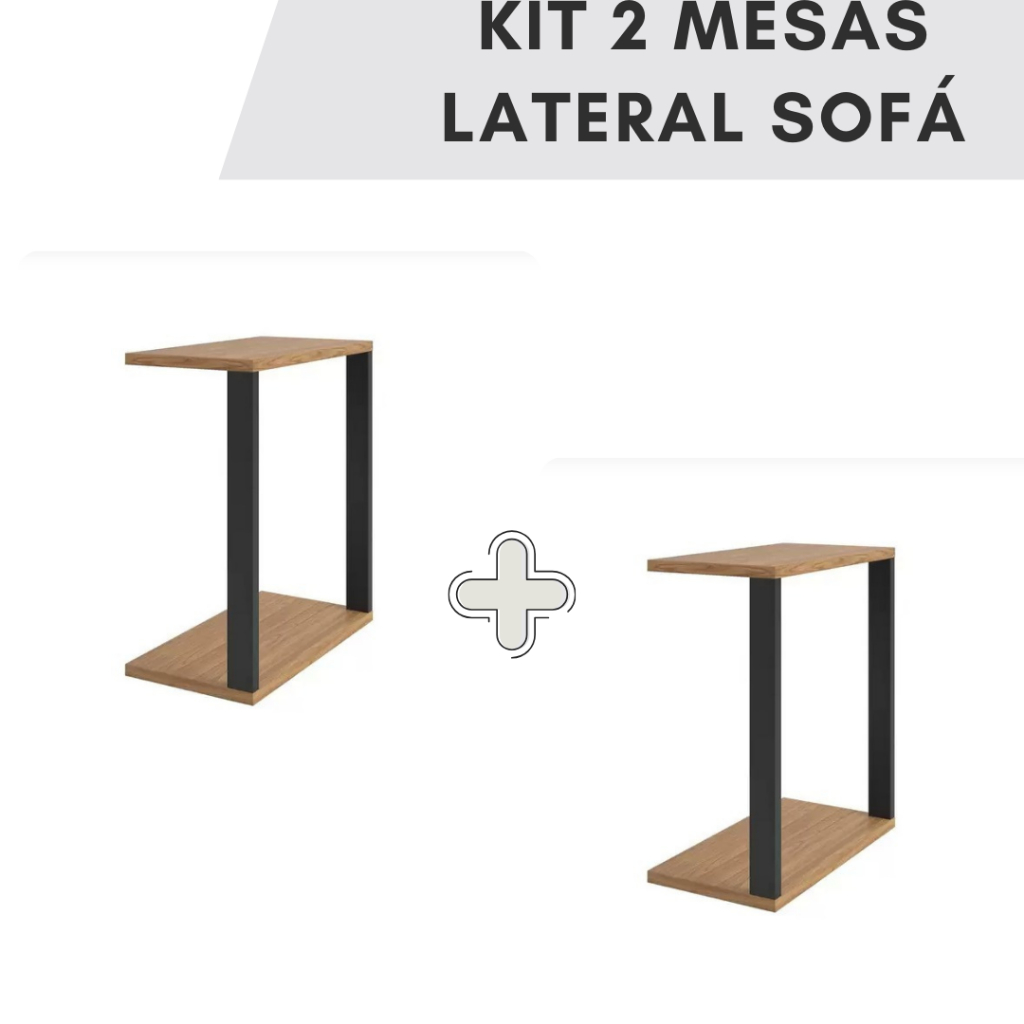 KIT 2 Mesinhas - Lateral Para Sofá Estilo Industrial 100% MDF, Mesa de Apoio, Mesa Auxiliar de sofá, Mesa de Canto
