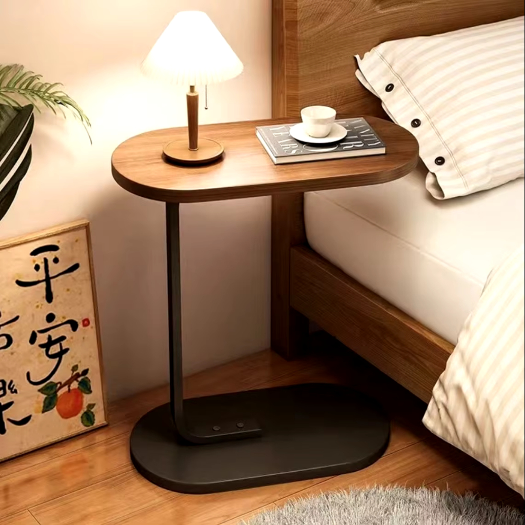 Mesa Lateral de Apoio para Canto Oval – Estilo Industrial em MDF e Ferro 45x28x60cm – Cor Bege ou Marrom