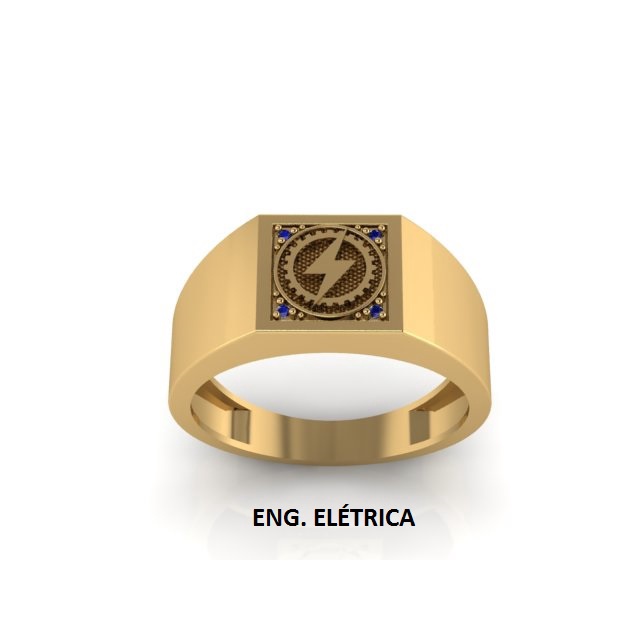 Anel de Formatura Moeda Antiga Eng Engenharia Elétrica c/ 4 Pedras Zircônia Azul