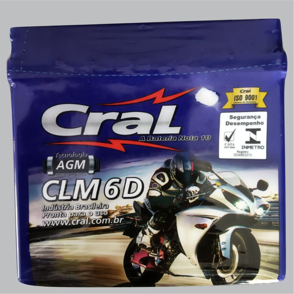 Bateria Moto Cral 6ah Titan 150 Cg 150 Mix Titan Fan Start 160/ Biz 100/ Biz 125 ks/ Crf 230/ Xre190 300/ Web 100/ Hunter 100/ Dafra nxr125 150 160