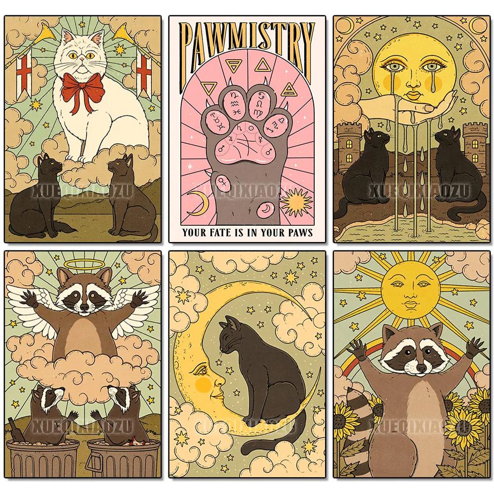 Desenho Animado Raccoon Cat Diamond Pintura Tarô Retro Pôster Cheio De Diamantes Bordado Mosaico À Mão