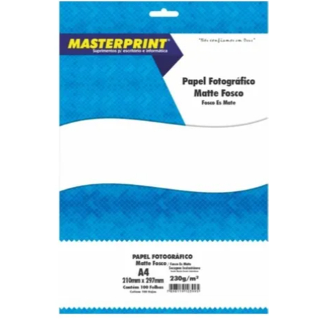Papel Fotográfico Especial Matte 230g A4 Branco Fosco Com 100 Folhas - MASTERPRINT