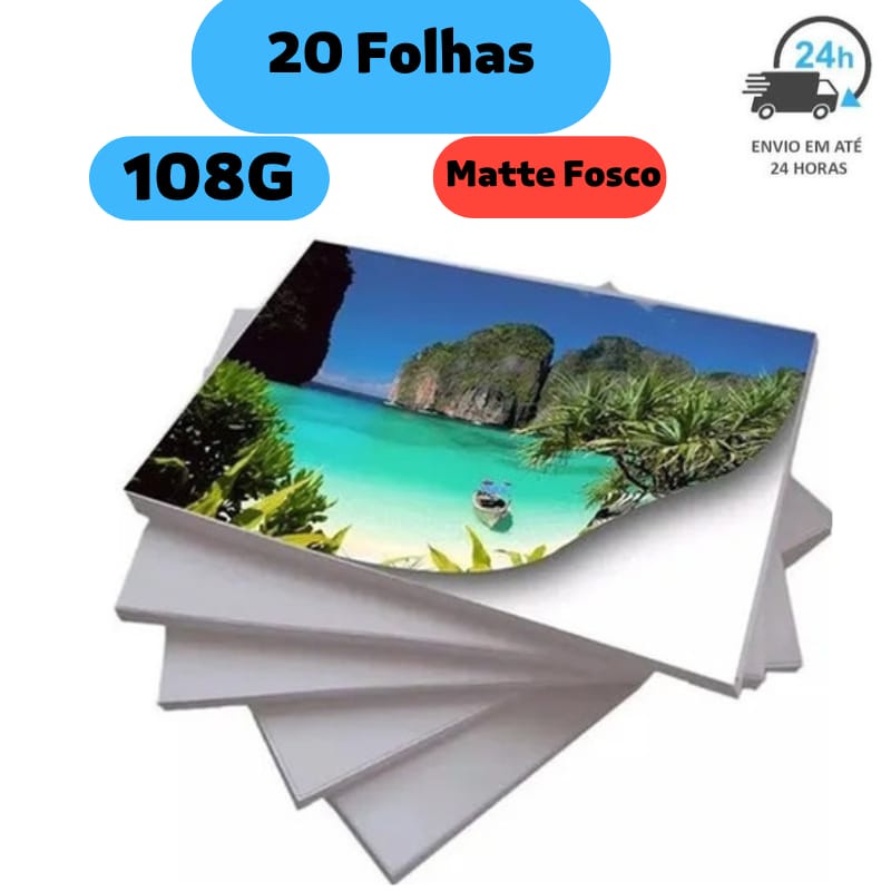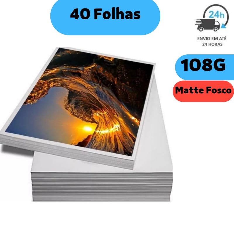 Kit 40 Folhas Papel Fotografico Matte Fosco Adesivo 108g Premium MASTERPRINT