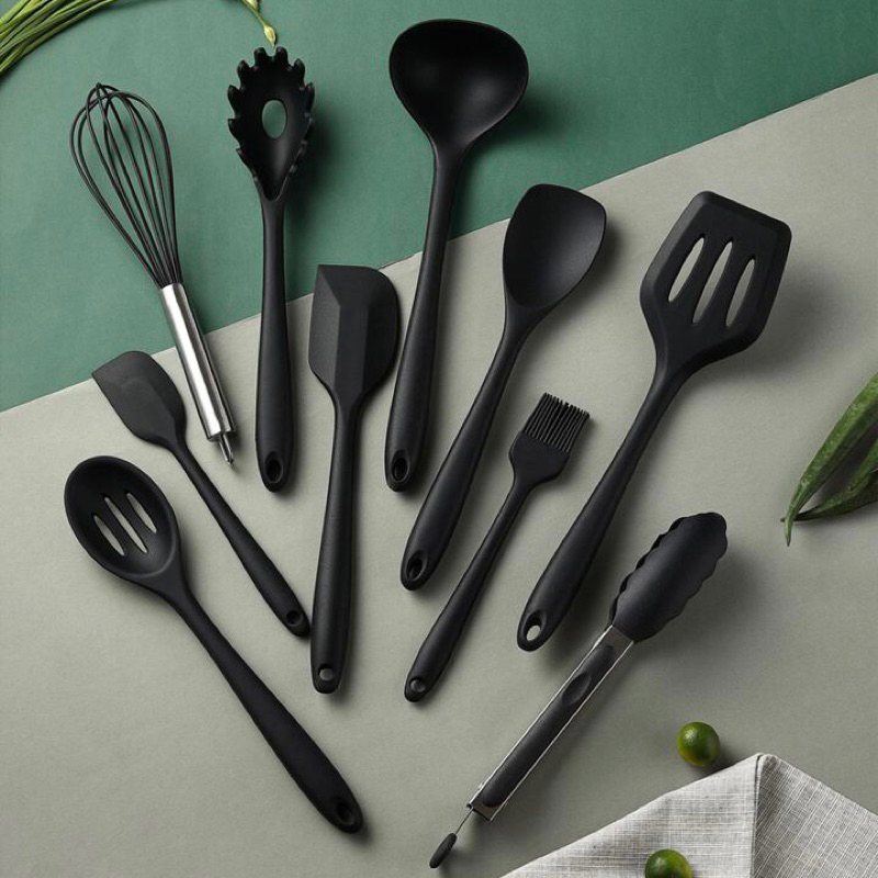 Conjunto Kit de Utensílios de Cozinha de Silicone Original Monte Seu Kit Jogo Completo para Cozinha Preto