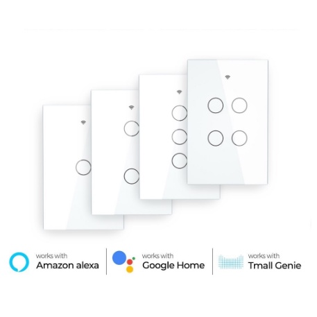 Novo Interruptor Inteligente WiFi Touch 1/2/3/4 Botões Compatível com VOZ Alexa e Google Assistant