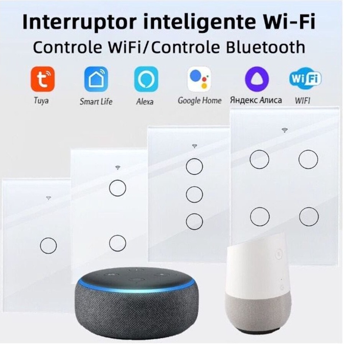 Interruptor Inteligente WiFi Touch 1/2/3/4 Botões Compatível com VOZ Alexa e Google Assistant COIBEU