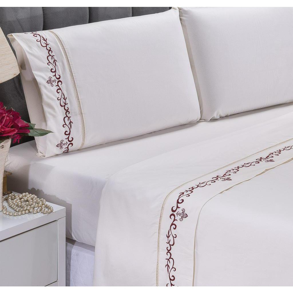 Jogo de Lençol Cama Box Casal Padrão Bordado Atenas Percal 400 Fios 4 peças
