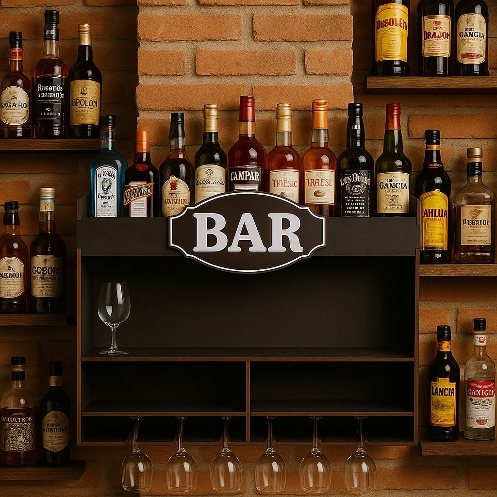 Bar Parede Adega Barzinho Suporte Vinho Taça Decoração Casa Mdf