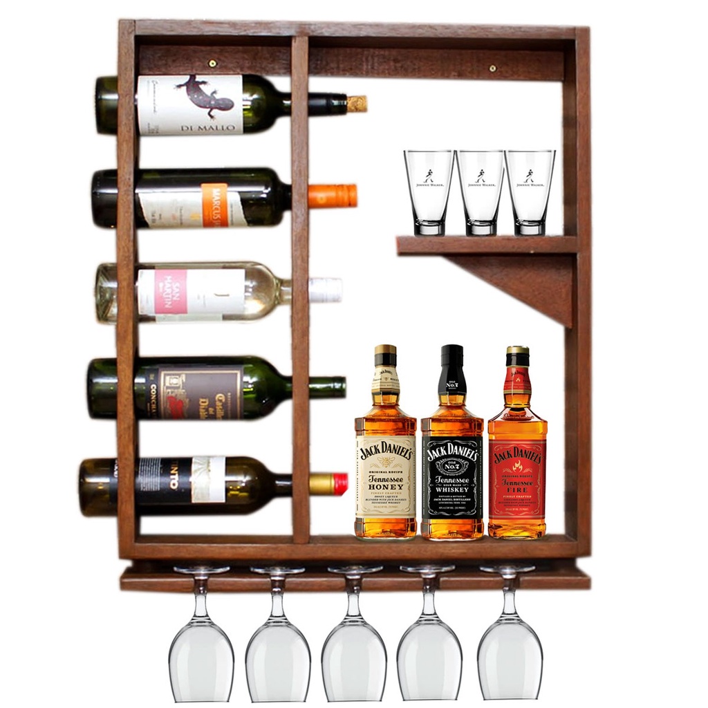 Bar Adega Barzinho De Parede Rústico Madeira Porta Garrafas De Vinhos Whisky Gin Bebidas Porta Taça Bar Decorativo