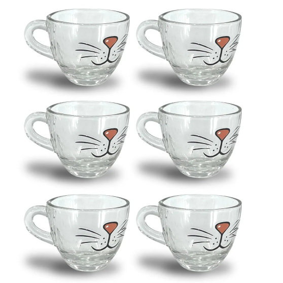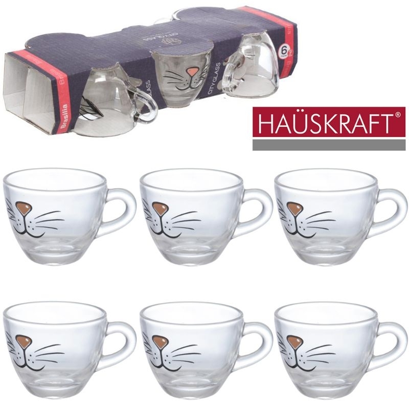 JOGO DE XICARA DE VIDRO PARA CAFE BRASILIA CAT HAUSKRAFT COM 6 PECAS 55ML