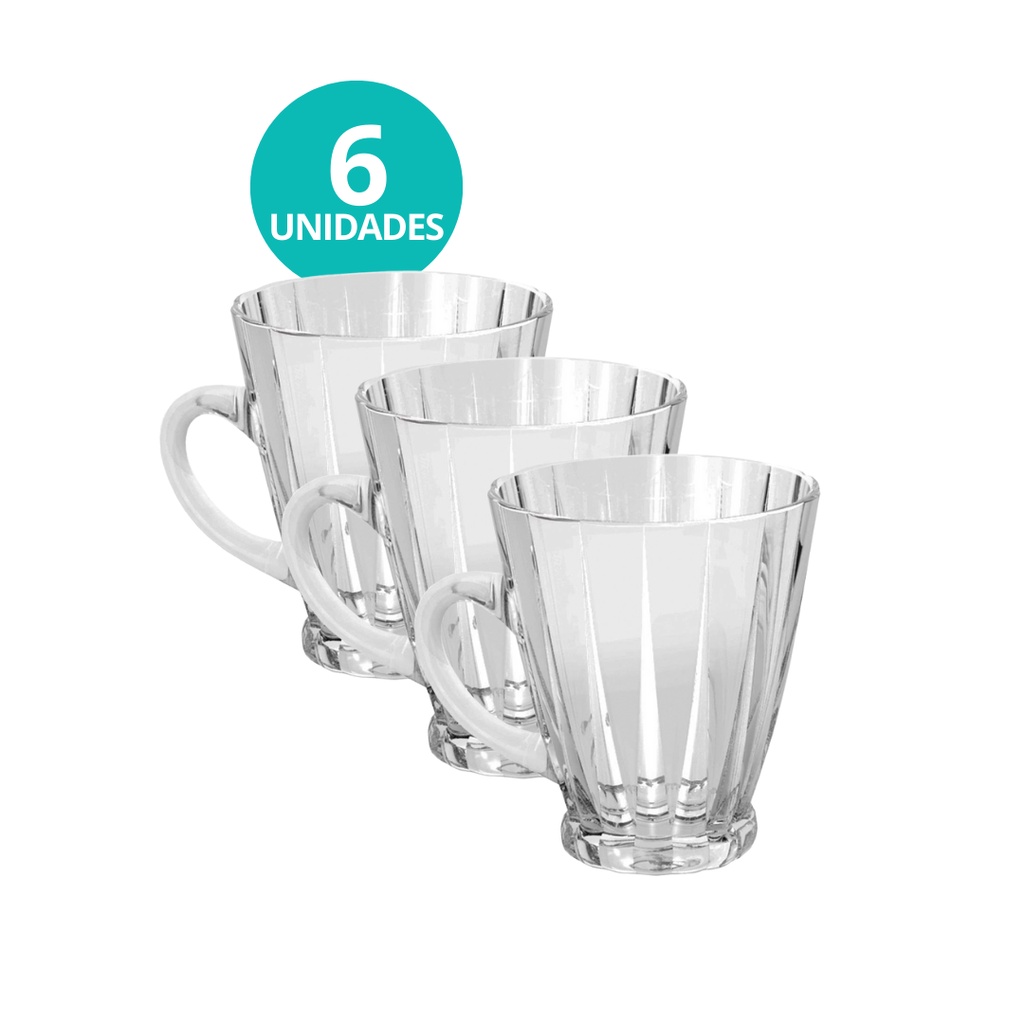 Jogo 6 Caneca Xícara De Vidro Transparente Para Cappuccino Expresso Café 180ml