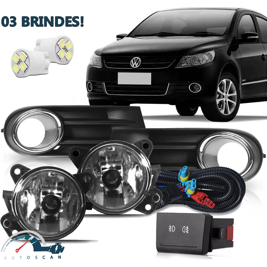 Kit Farol Milha Gol Voyage Saveiro G5 2009 2010 2011 2012 13 Moldura Cromada C/ Botão Original