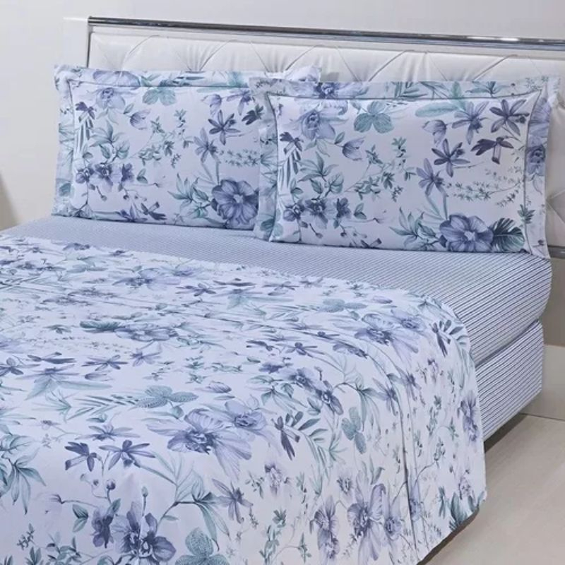 Kit Completo Edredom + Jogo de Lençol 100% Algodão CASAL, QUEEN ou KING Percal 180 Fios Margarida